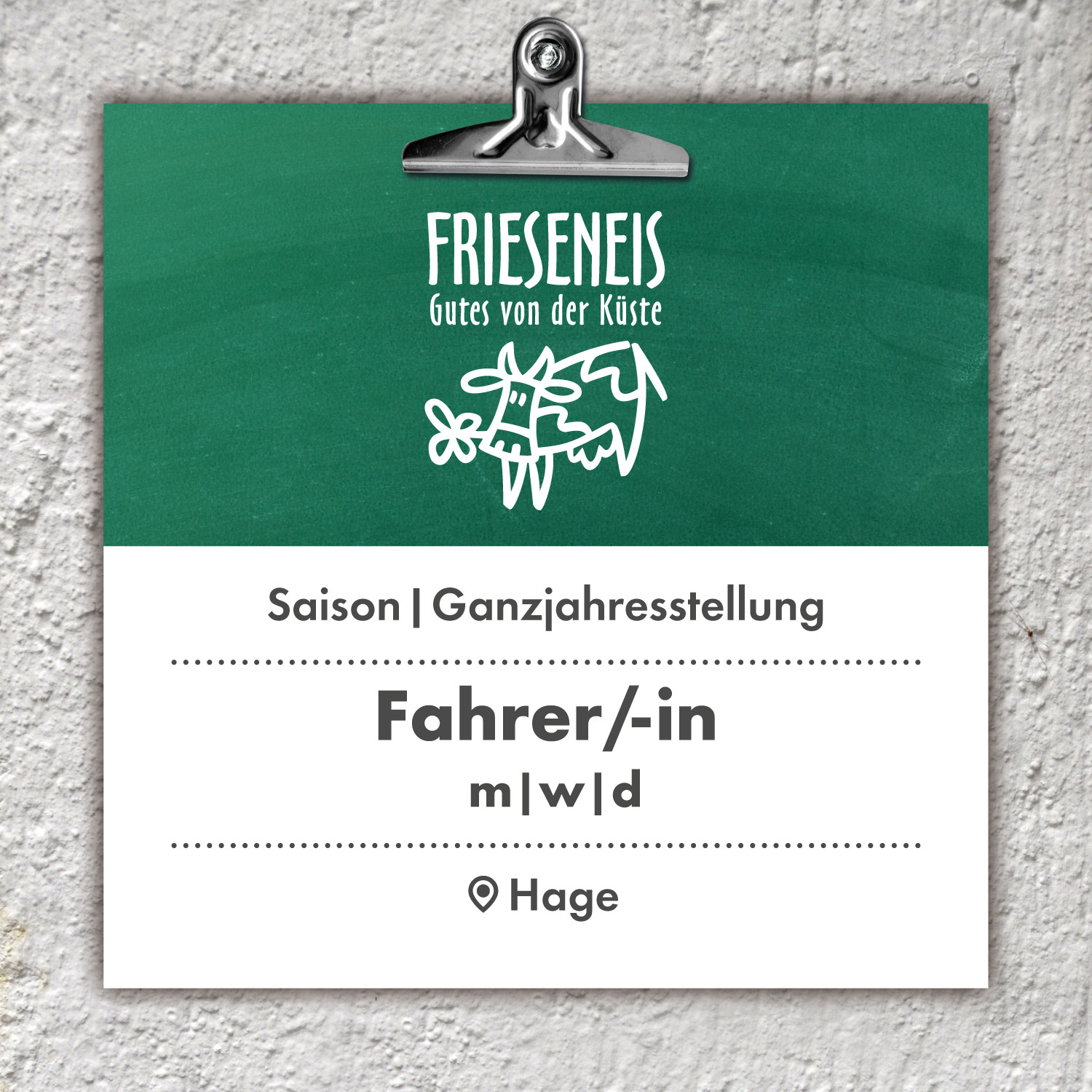 Wir suchen für unsere Eisfabrik in Hage, Ostfriesland, eine/-n Fahrer/-in für 30 Stunden pro Woche. Führerschein Klasse B ist Voraussetzung. Wenn du Freude daran hast, unsere Kunden im ostfriesischen Raum und darüber hinaus zu beliefern, sende deine Kurzbewerbung einfach per Mail an ahoi@inseljobs.info oder per WhatsApp an Kyra Eilers 0151-46524369.