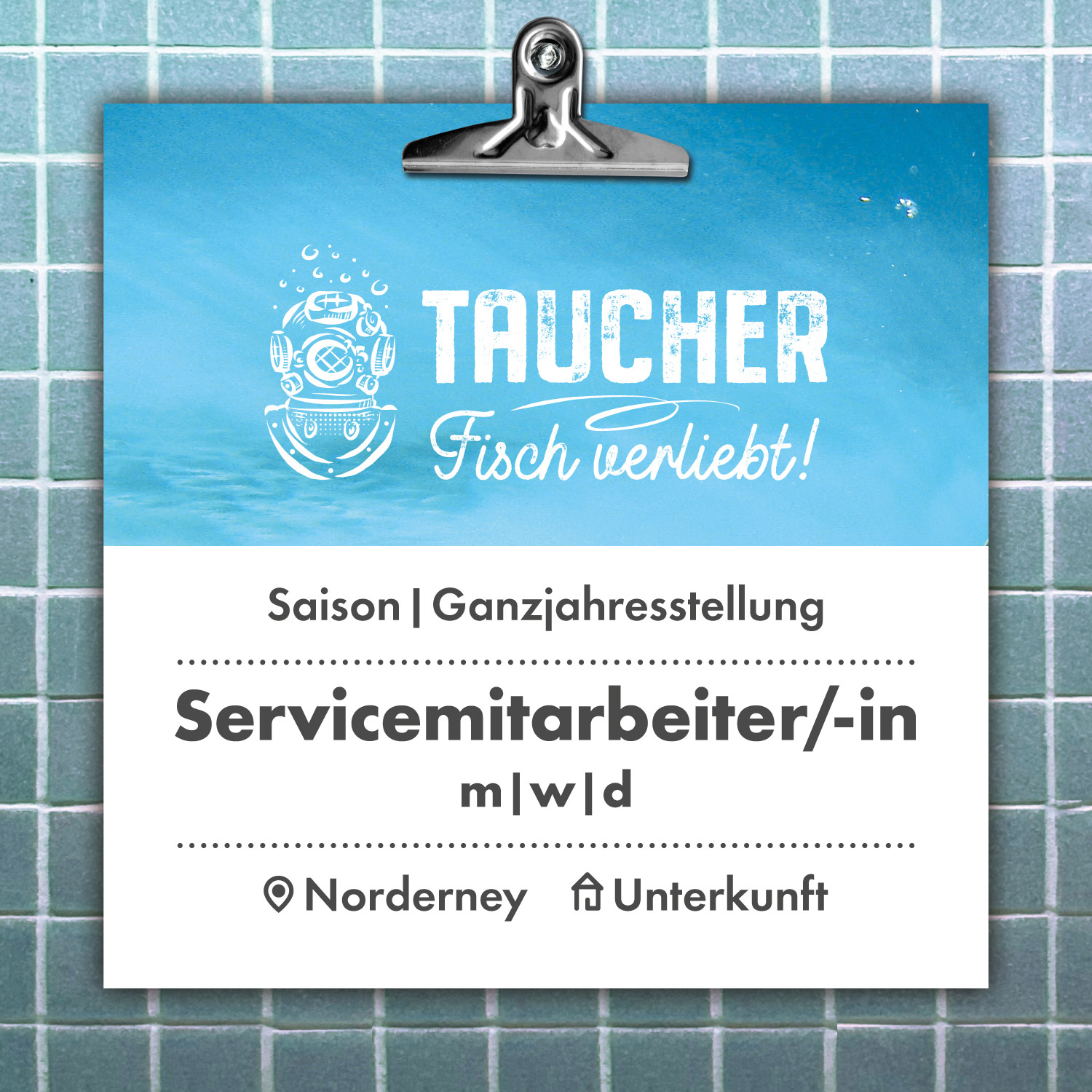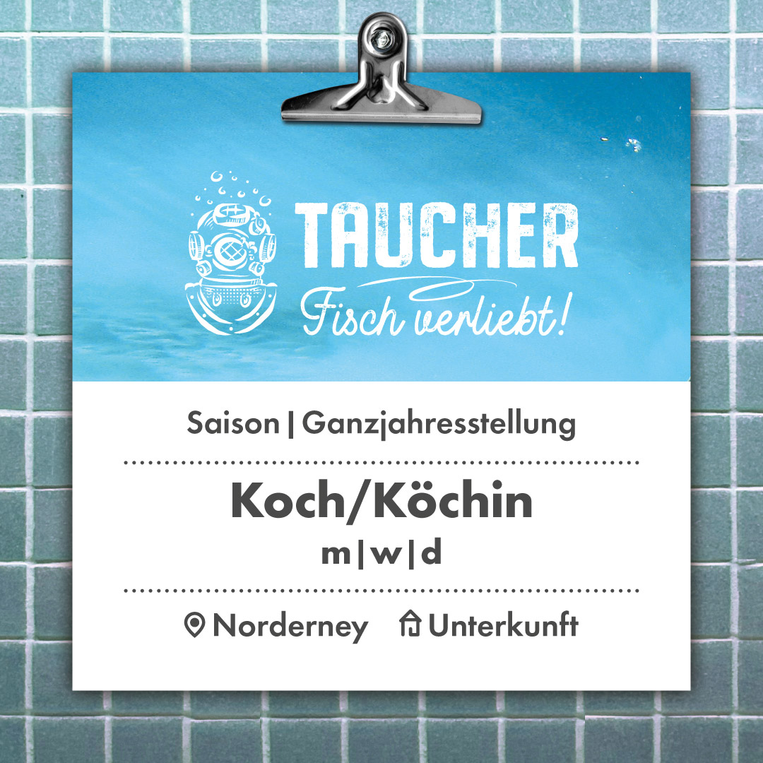 Für unser kleines, aber feines Fischrestaurant „Taucher“, in der City von Norderney gelegen, suchen wir dich mit Leidenschaft am Herd und Freude an der Arbeit in einem kleinen Team, wo man noch etwas bewirken kann.